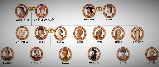 Dintre de la familia reial ja començem ha aber-hi senyals de matrimonis . Isabel la gran dels 5 germans ha contraiit matrimoni amb Manuel i de portugal,Juan de Aragon se ha prometido con Margarita d´Austria,Joana i de castilla prometida de Felipe i de Castilla, Maria de Aragon amb Manuel i de portugal i per ultim la petita Catalina de 20 anys s´ha promes amb Enrique VIII de Inglaterra Juana la loca i felipe el hermoso
